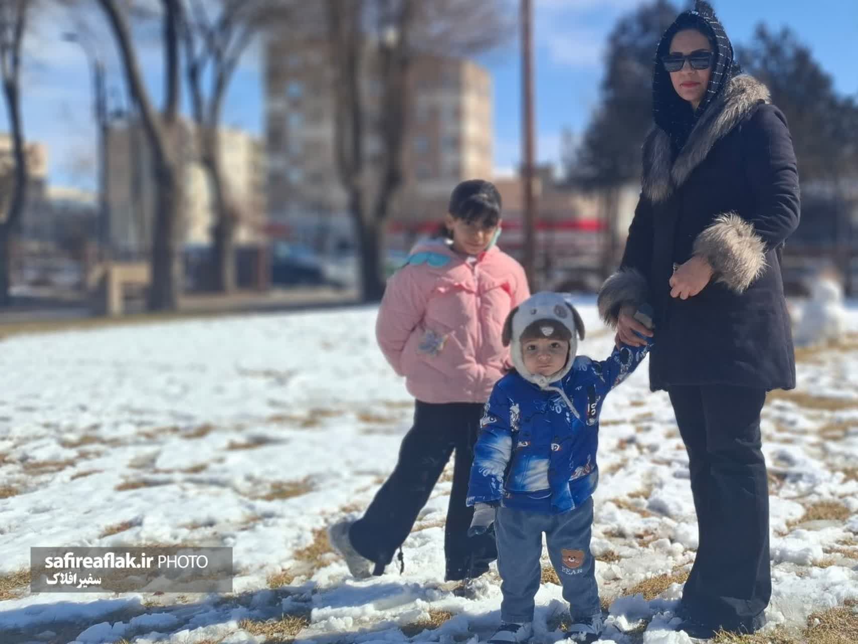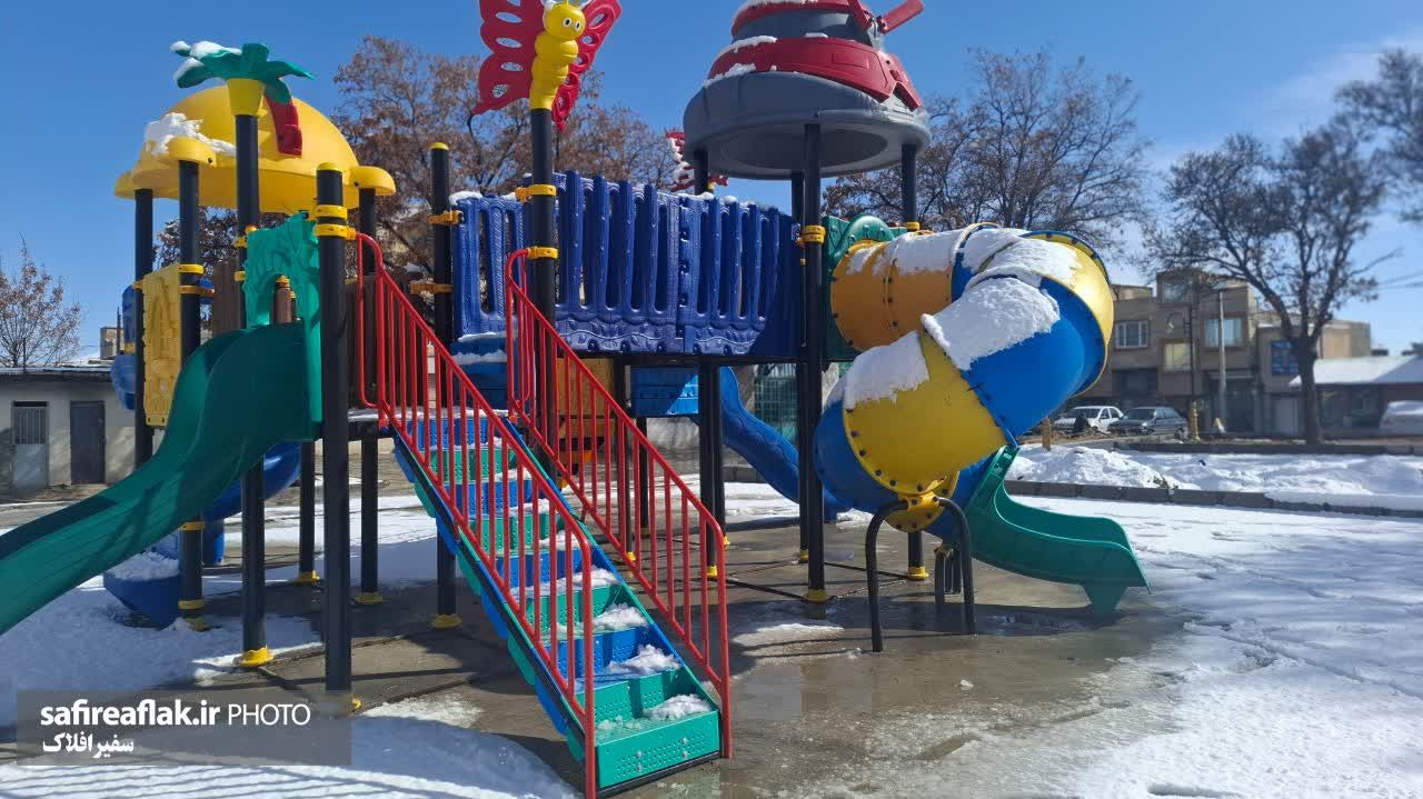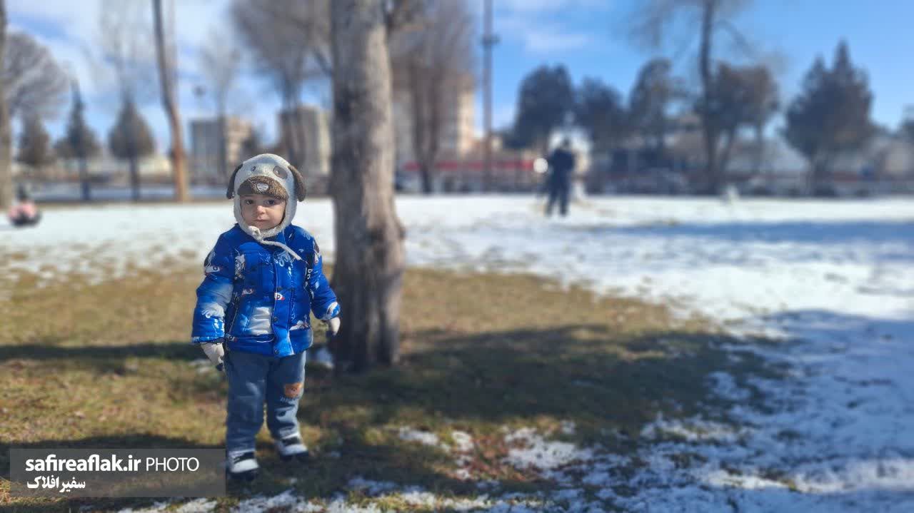 در کنار این مناظر، بازی کودکان در پارکها جلوهای زنده به تصاویر داده و سرمای هوا را با شور و تحرک کودکانه همراه کرده است. برف، این بار ازنا را همزمان آرام و پرنشاط به تصویر کشیده است.