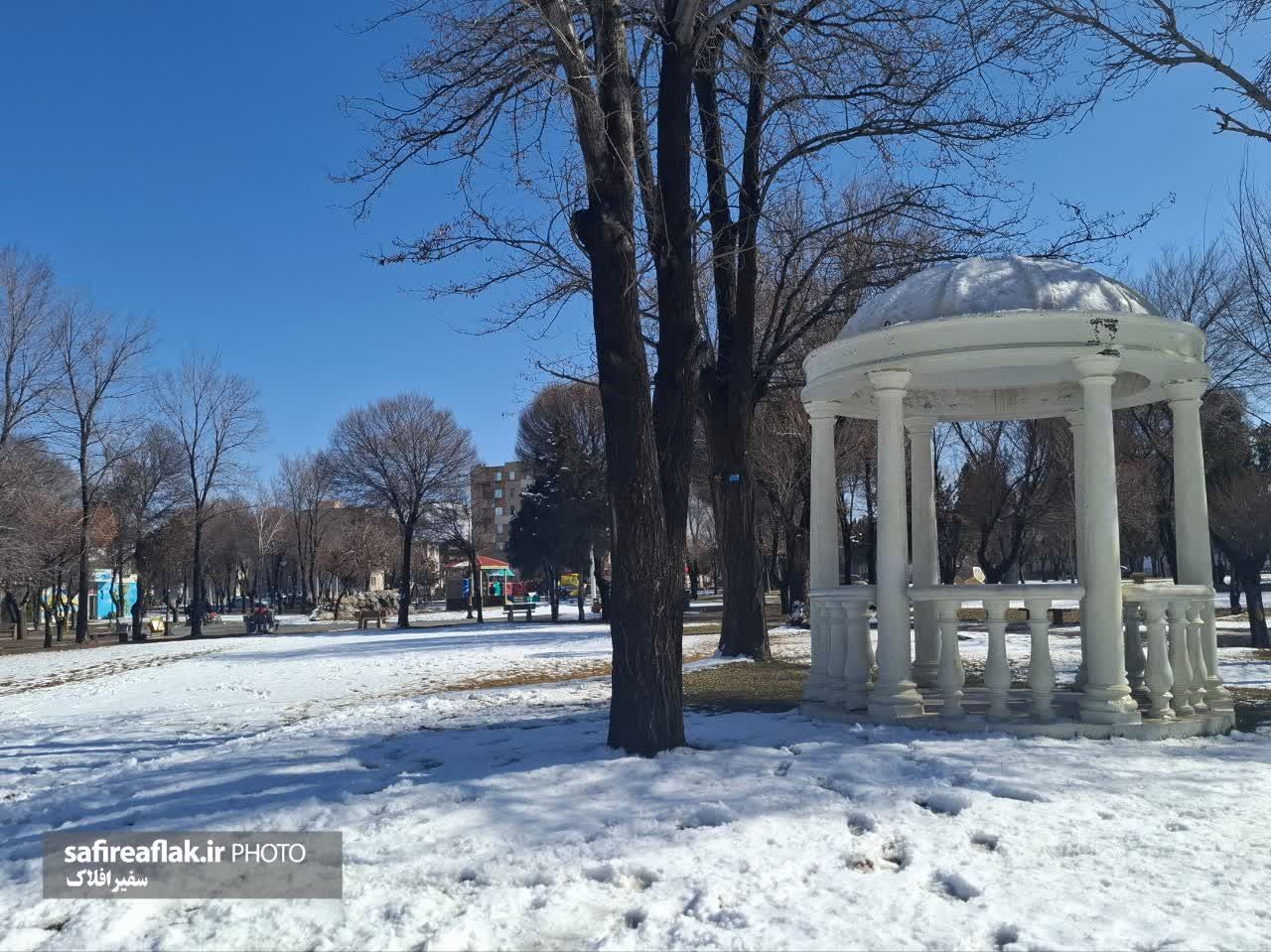 بارش برف زمستانی، فضاهای شهری و پارکهای ازنا را سفیدپوش کرده و جلوهای آرام و زمستانی به شهر بخشیده است.