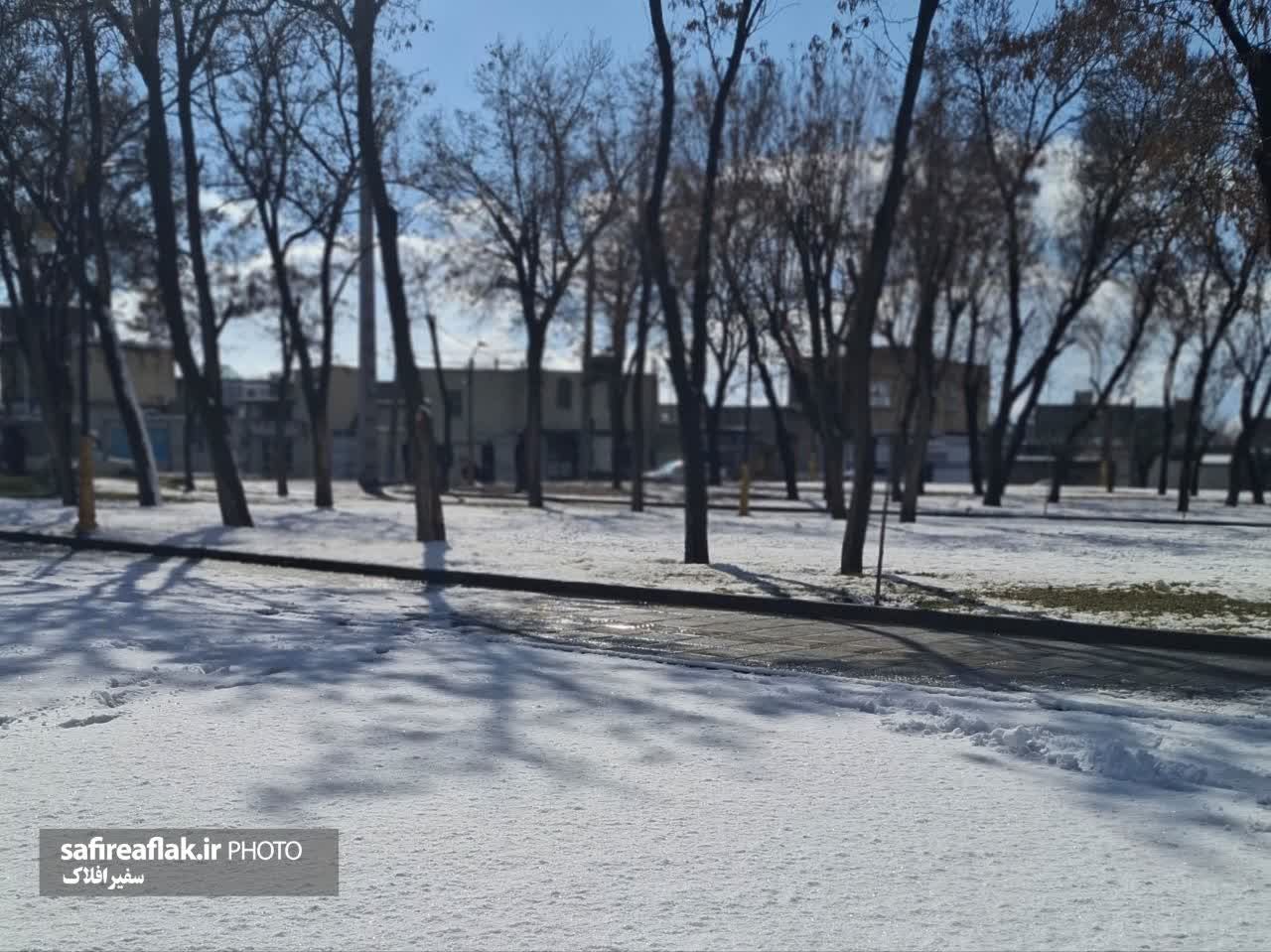 به گزارش خبرنگار گروه چندرسانهای پایگاه خبری تحلیلی «سفیرافلاک»، بارش برف، فضاهای شهری و پارکهای ازنا را در پوششی سفید فروبرده است. زمینهای برفی، درختان زمستانزده و نور آفتاب در آسمان صاف، چهرهای آرام و زمستانی به شهر بخشیدهاند.