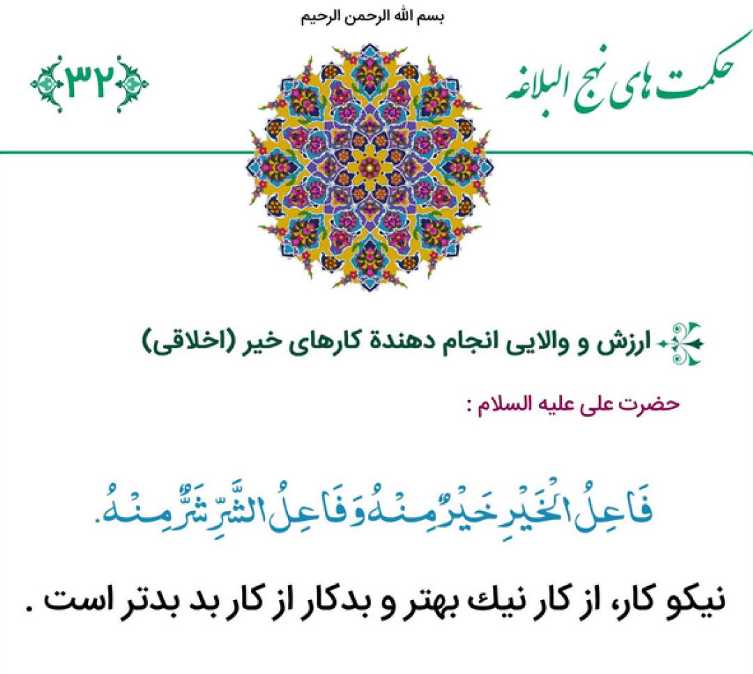 امیرالمؤمنین حضرت علی (ع) در حکمت سی و دوم نهجالبلاغه از برتری نیکوکار بر کار نیکو گفتهاند.