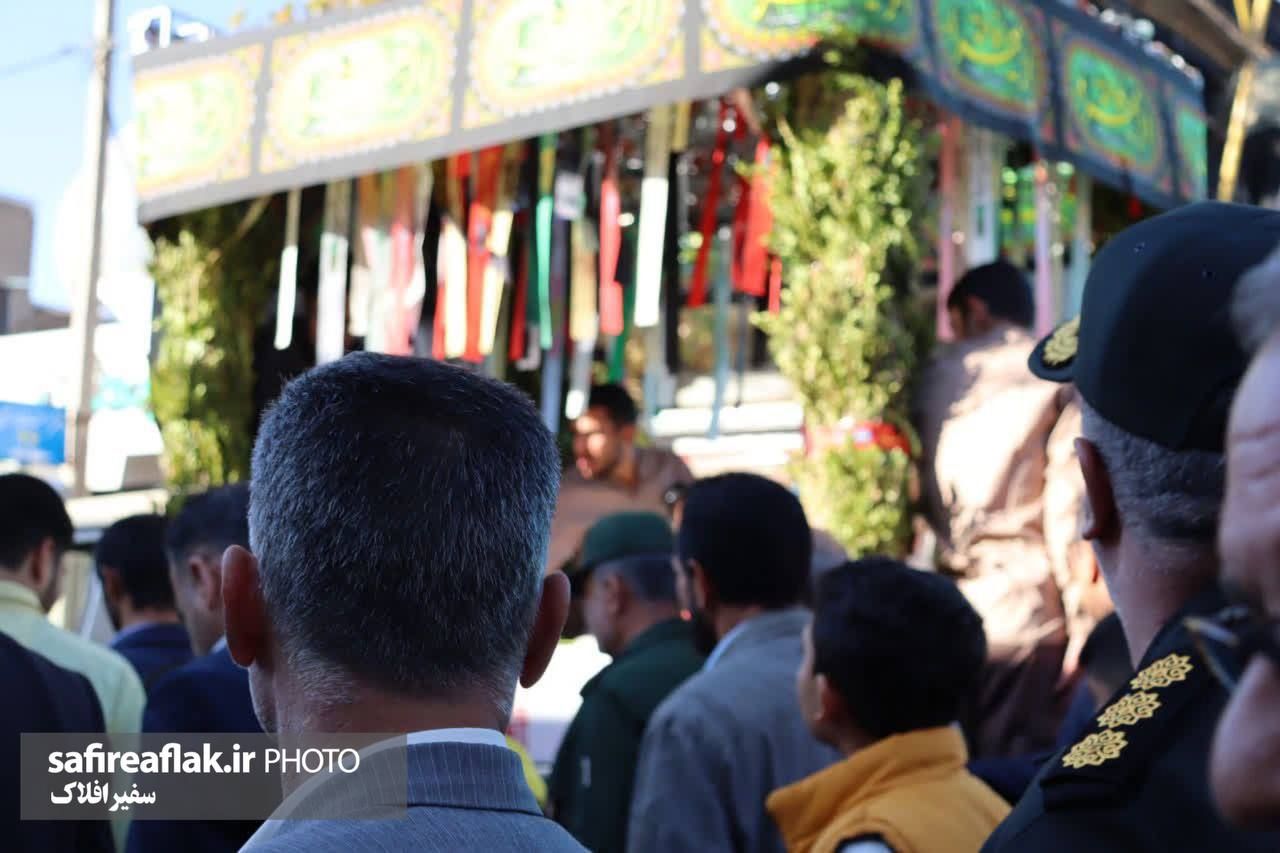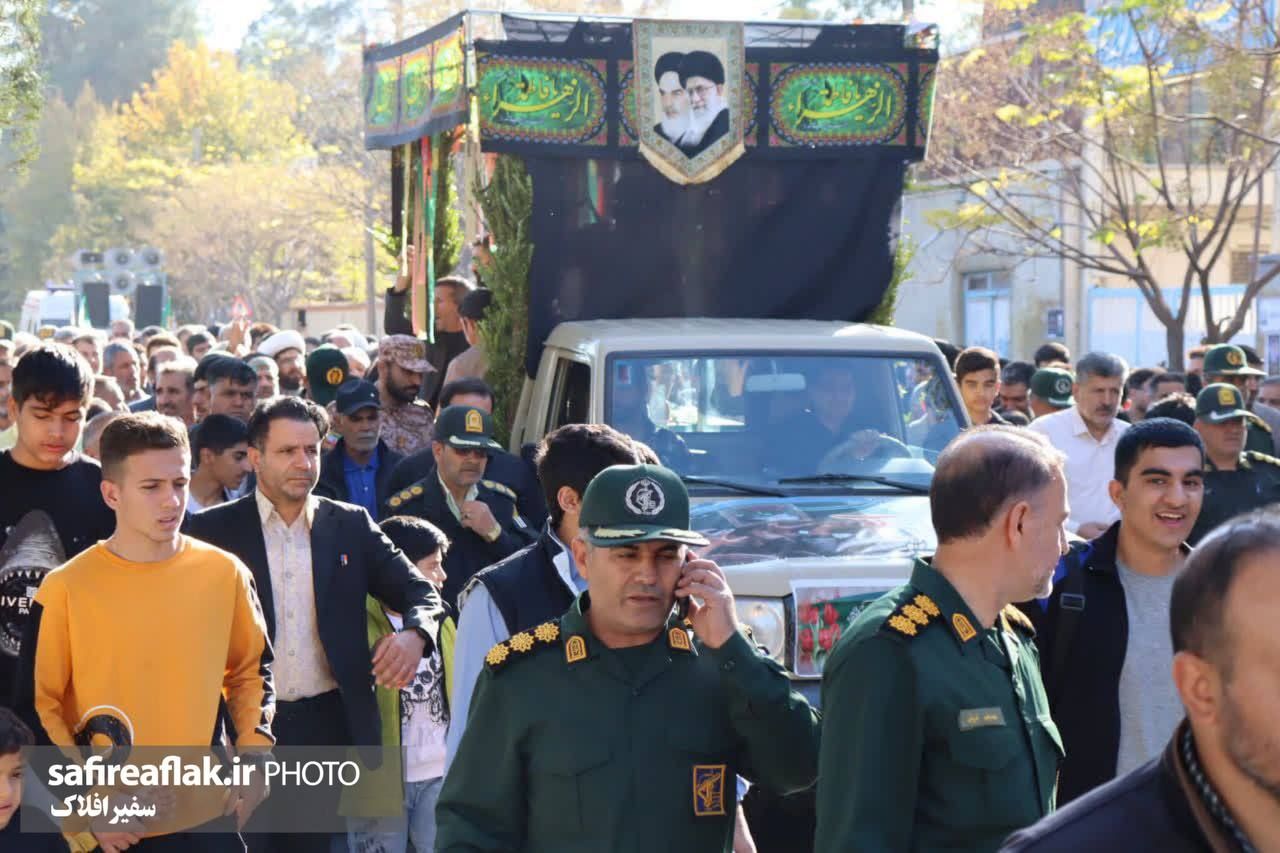 به گزارش گروه چندرسانهای پایگاه خبری تحلیلی «سفیرافلاک»، عصر امروز، کوهدشت حالوهوای دیگری داشت؛ خیابانها آرامآرام پُر میشد از مردمی که آمده بودند تا بر دستانشان ستارهای گمنام را بدرقه کنند. باد ملایمی پرچمهای سیاه و سرخ را در هم میدوخت و عطر اسپند، فضای خیابانهای منتهی به محل تشییع را آکنده کرده بود.