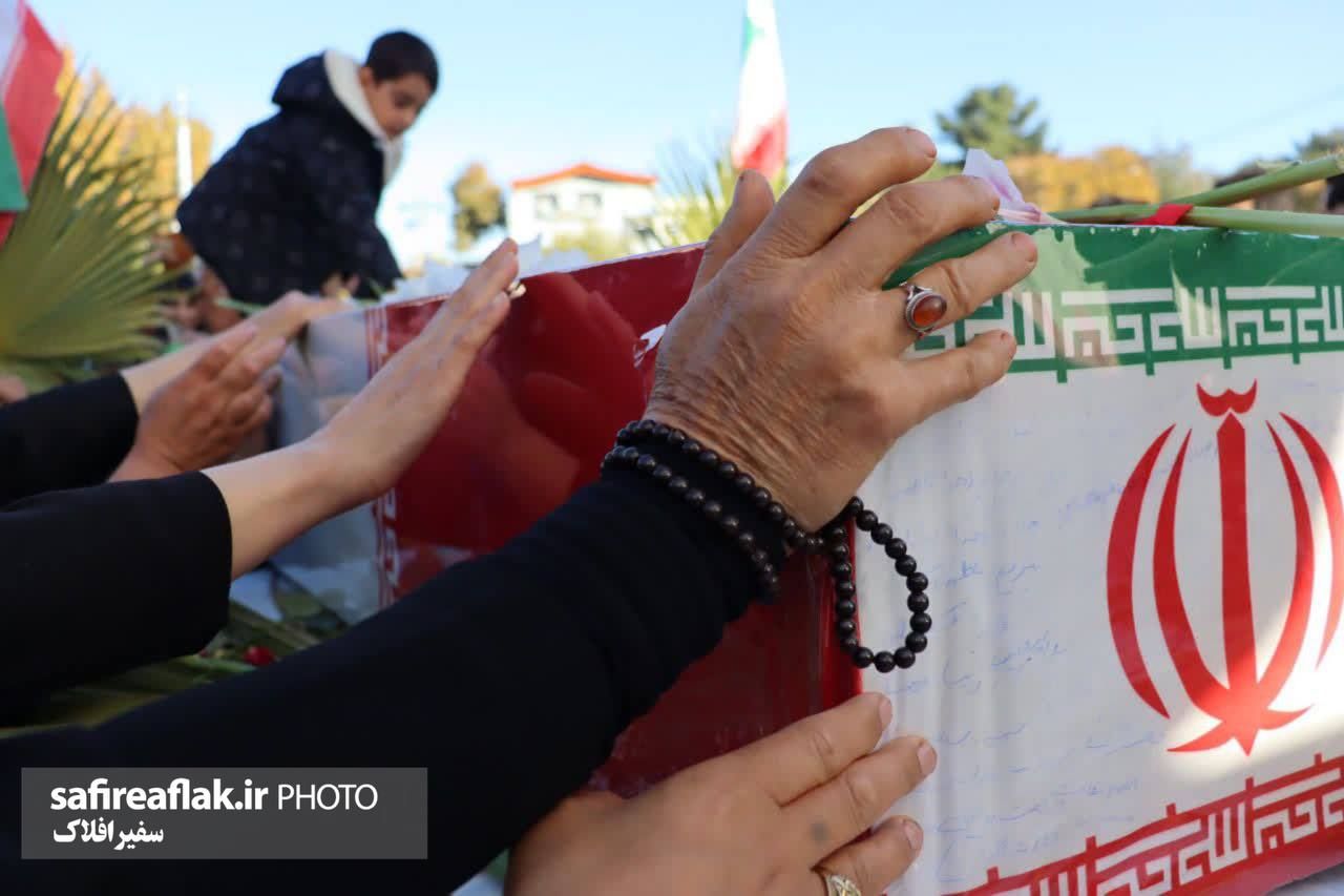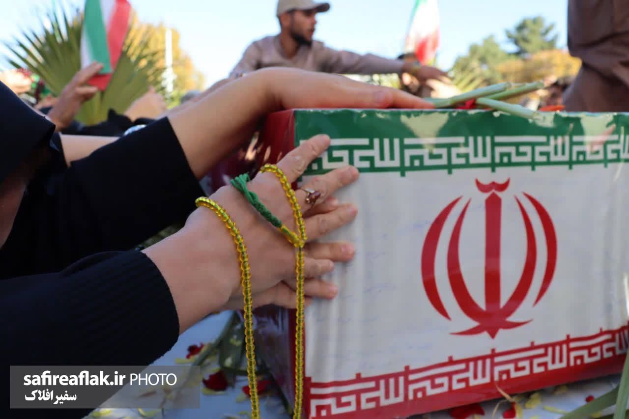 از دور، تابوت پیچیده در پرچم سهرنگ ایران روی دستان مردم چون چراغی روشن در میان موج جمعیت حرکت میکرد. چهرهها بغضزده، چشمها خیس و دلها پر از روایتهایی نانوشته بود؛ روایتی از جوانی که نامش در خاک مانده اما یادش در دلها سبز است.