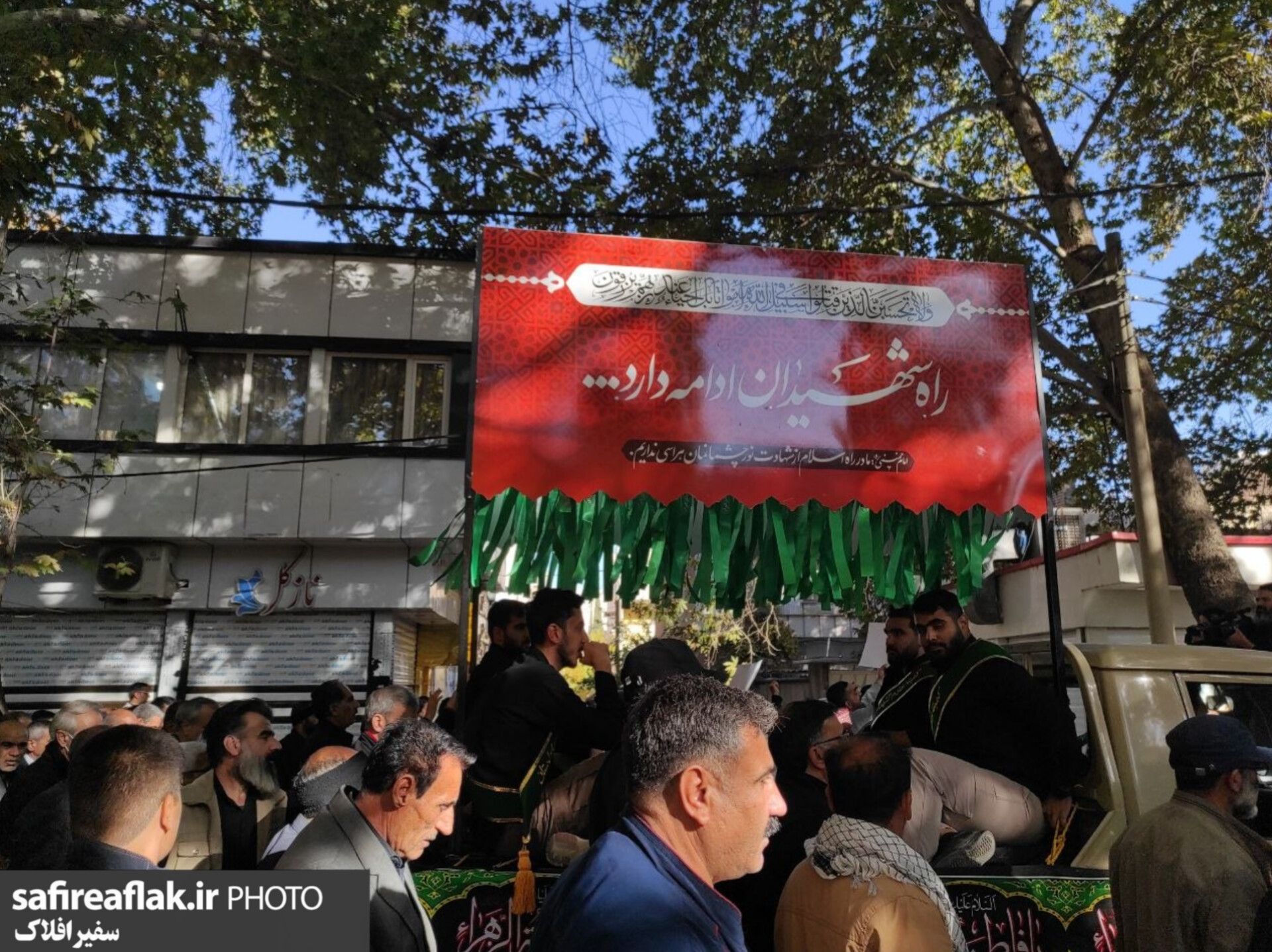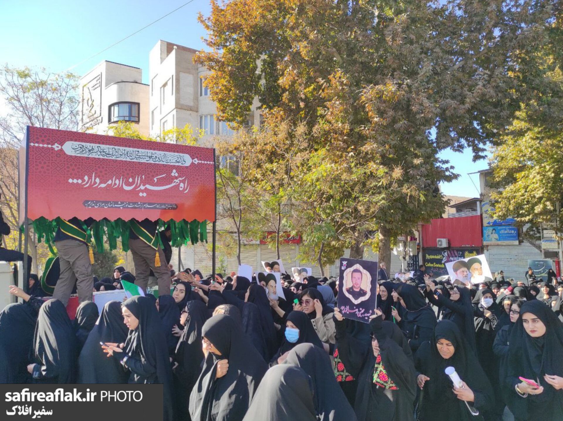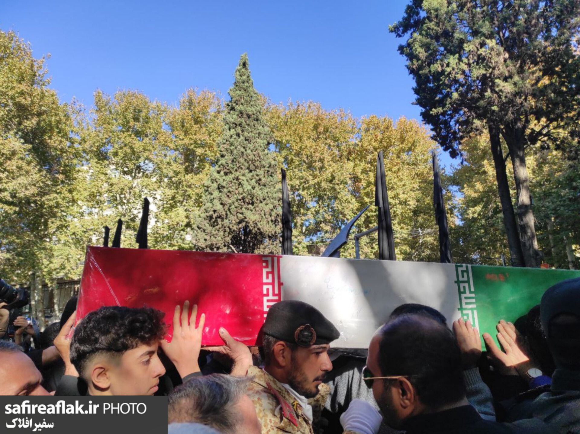از نخستین ساعات صبح، خیابانهای اطراف محل تشییع آرام آرام پُر شد؛ پیرمردانی با پرچمهای یا زهرا (س)، مادرانی که چادرهای مشکیشان را محکم گرفته بودند، نوجوانانی با چفیه بر گردن و قلبهایی که بینامترین سربازان وطن را آشناتر از هر نام و نشانی میدانستند.