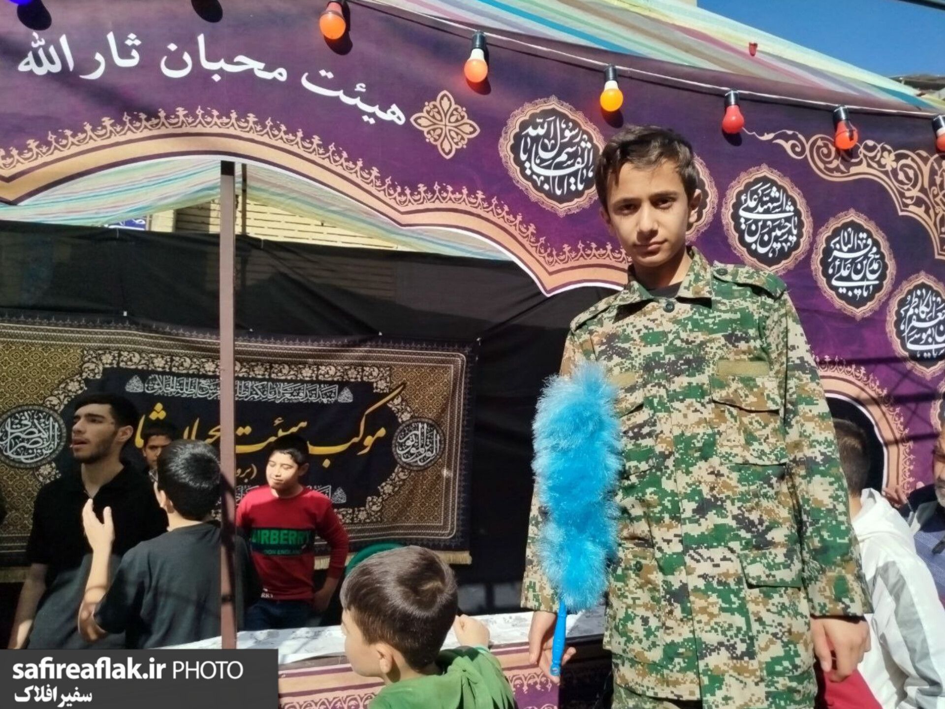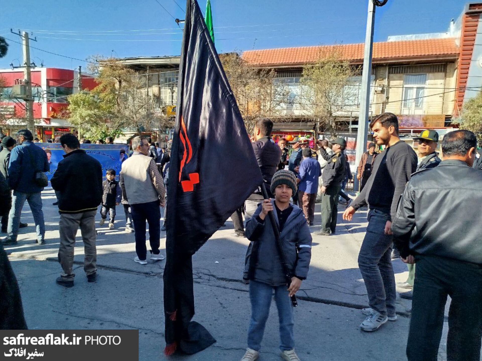 در میان تمام این غوغا، در میان مردان و هیئتها، تصویر یک کودک بیشتر از همه به چشم میآید؛ پسربچهای با کلاه بافتنی و چهرهای جدی، که پرچم بزرگ مشکی را با هر دودست گرفته است. پرچم در باد میرقصد و سایهاش روی صورت او میافتد؛ گویی کوچکترین عضو این مراسم، حامل بزرگترین پیام آن است. هر بار که باد، پرچم را تکان میدهد، او پاهایش را محکمتر روی زمین میگذارد؛ انگار میخواهد بگوید: «ایستادهام… مثل همه این مردمی که آمدهاند.»