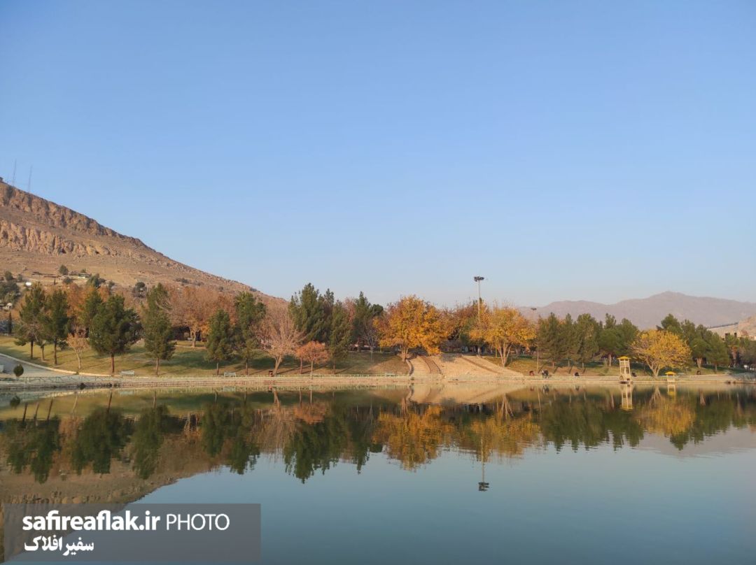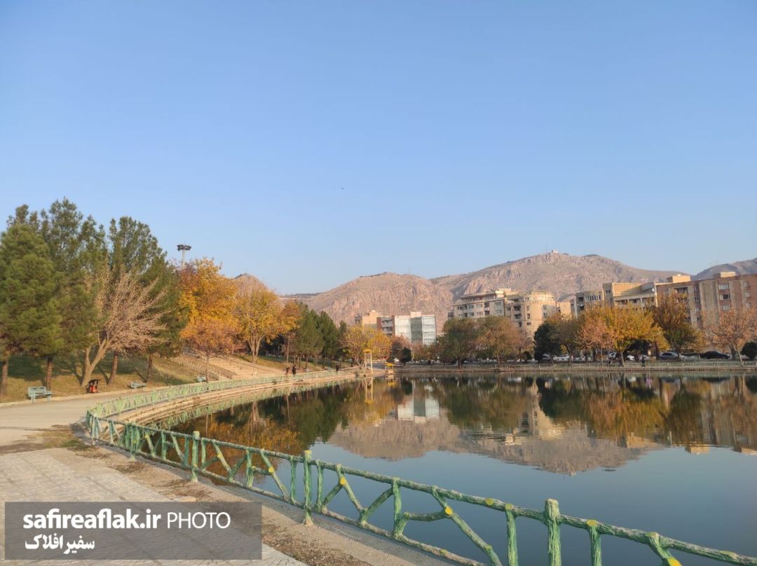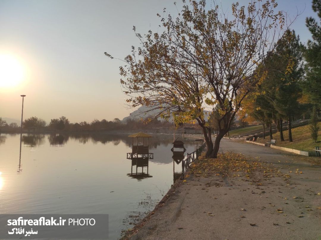 به گزارش خبرنگار گروه چندرسانهای پایگاه خبری تحلیلی سفیرافلاک، سطح صاف دریاچه پارک بهشت خرمآباد، کوهها و درختان را در خود تکرار میکند؛ برگهای پائیزی بر شاخهها نشستهاند و مسیرهای اطراف در سکوتی دلنشین امتداد یافتهاند. نردههای سبز، آلاچیقهای کنار آب و آسمان صاف، قابهایی آرام ساختهاند؛ قابهایی که زیبایی پائیز را در دل پارک بهشت به نمایش میگذارند.