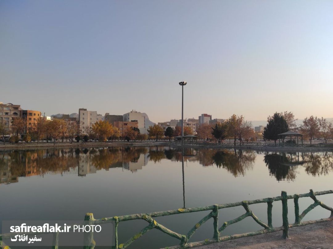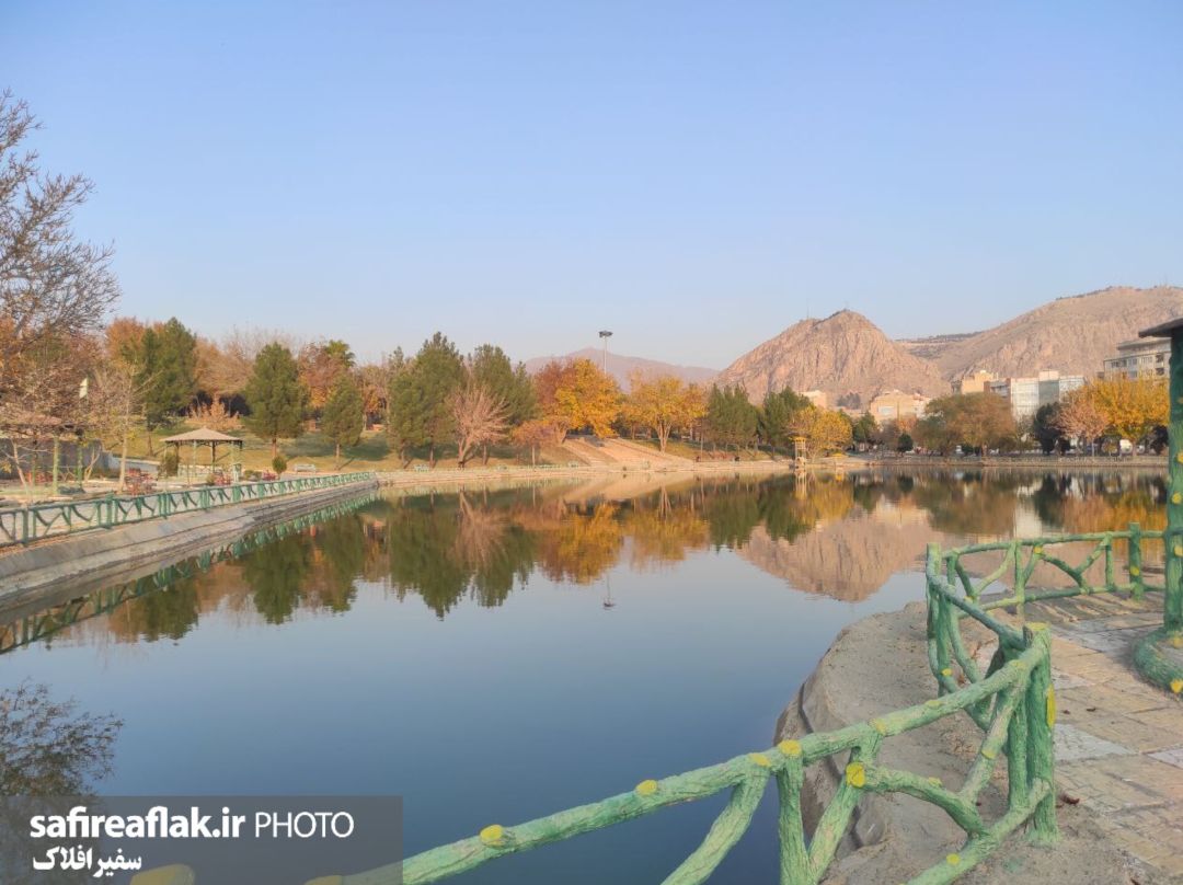 پارک بهشت خرمآباد در روزهای پائیز، با دریاچهای آرام و انعکاس رنگهای زرد و نارنجی درختان، جلوهای چشمنواز از طبیعت شهری را به تصویر میکشد.
