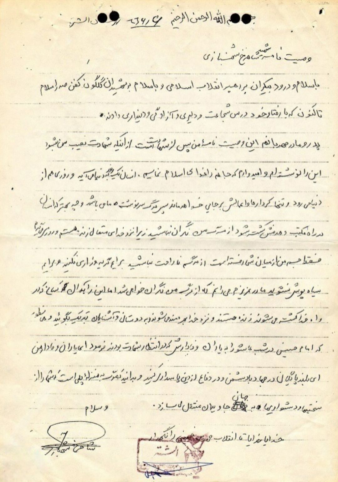 وصیتنامه شهید «شاهرخ شهبازی»؛