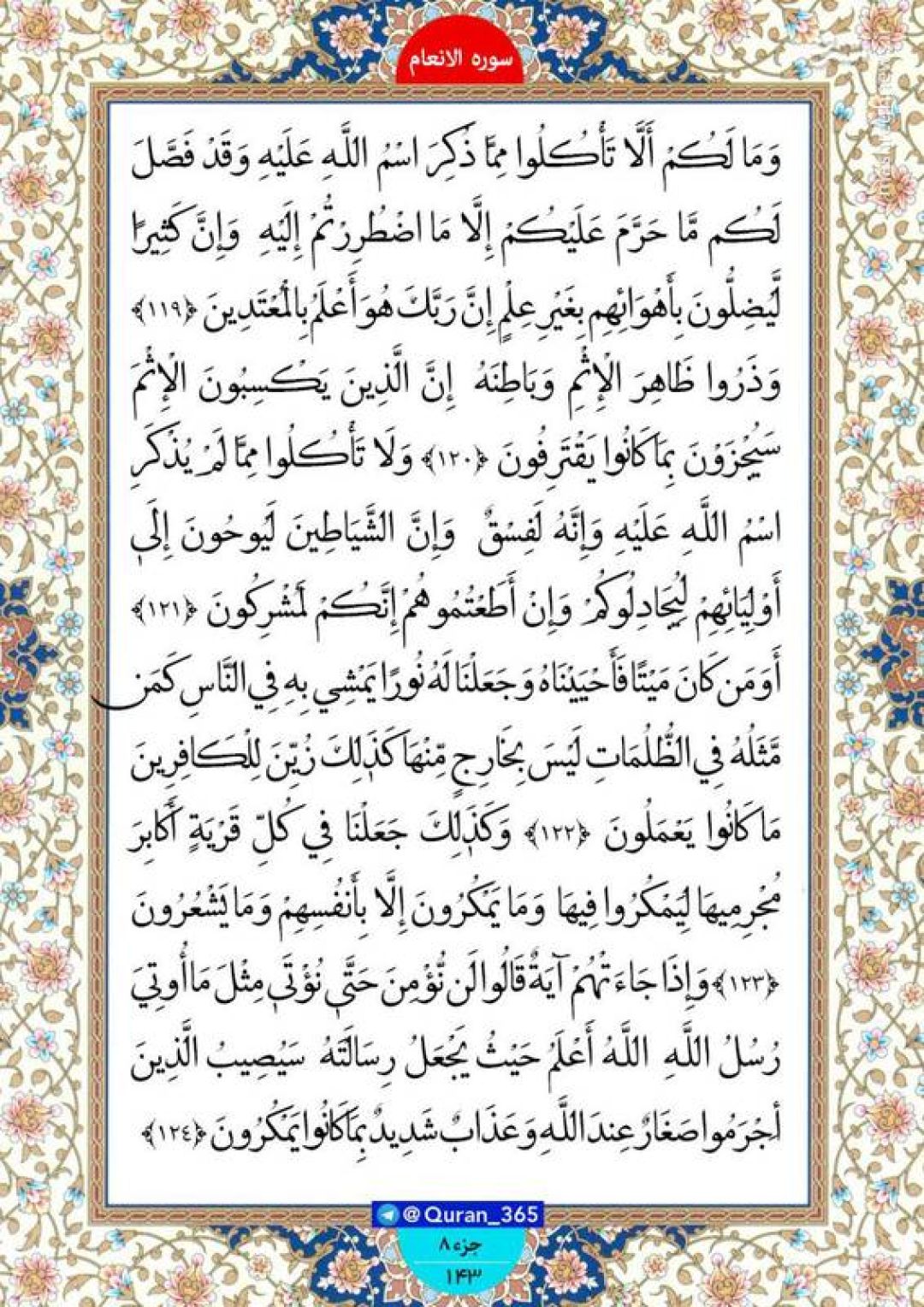 آیات ۱۱۹ تا ۱۲۴ سوره انعام؛
